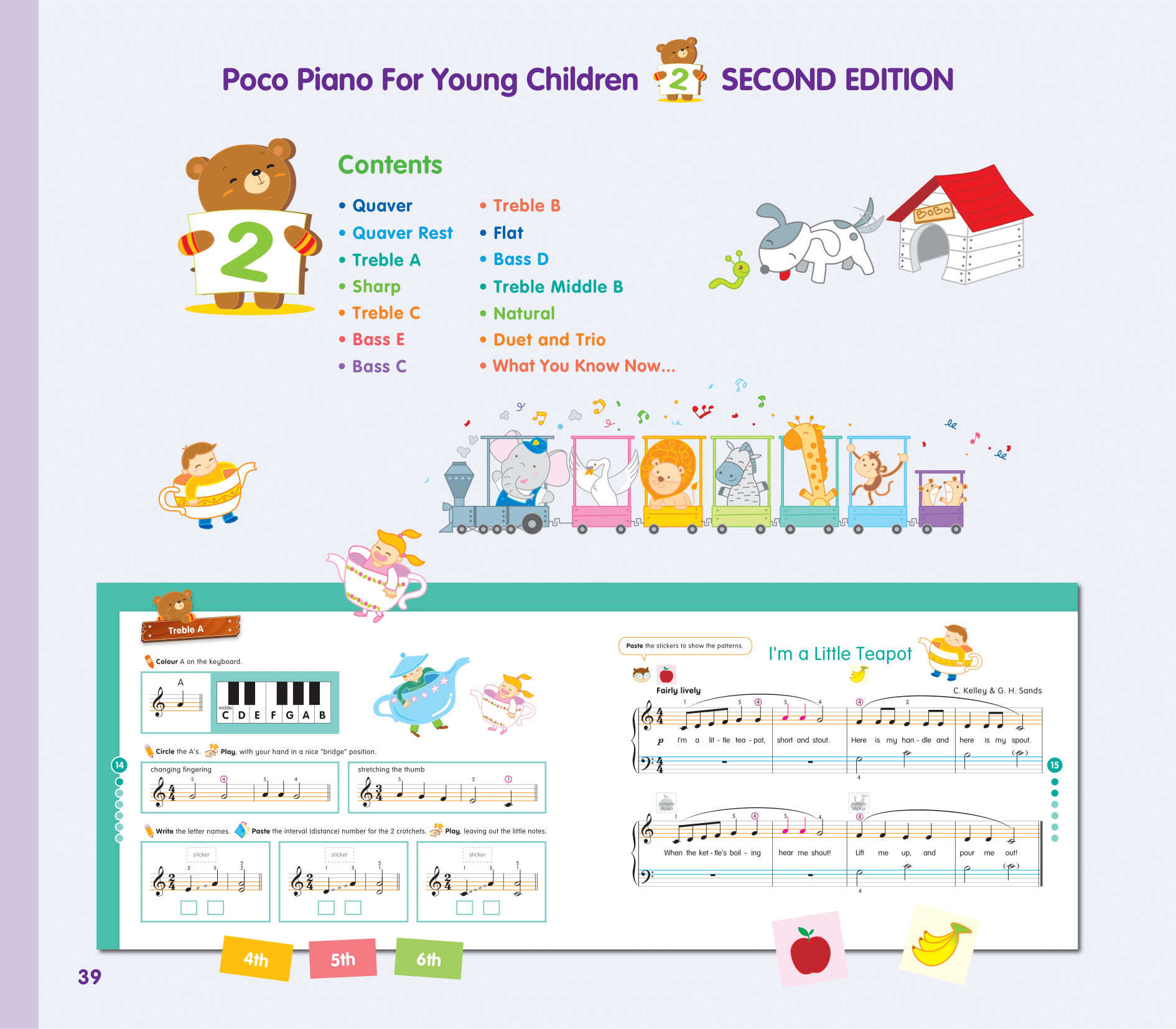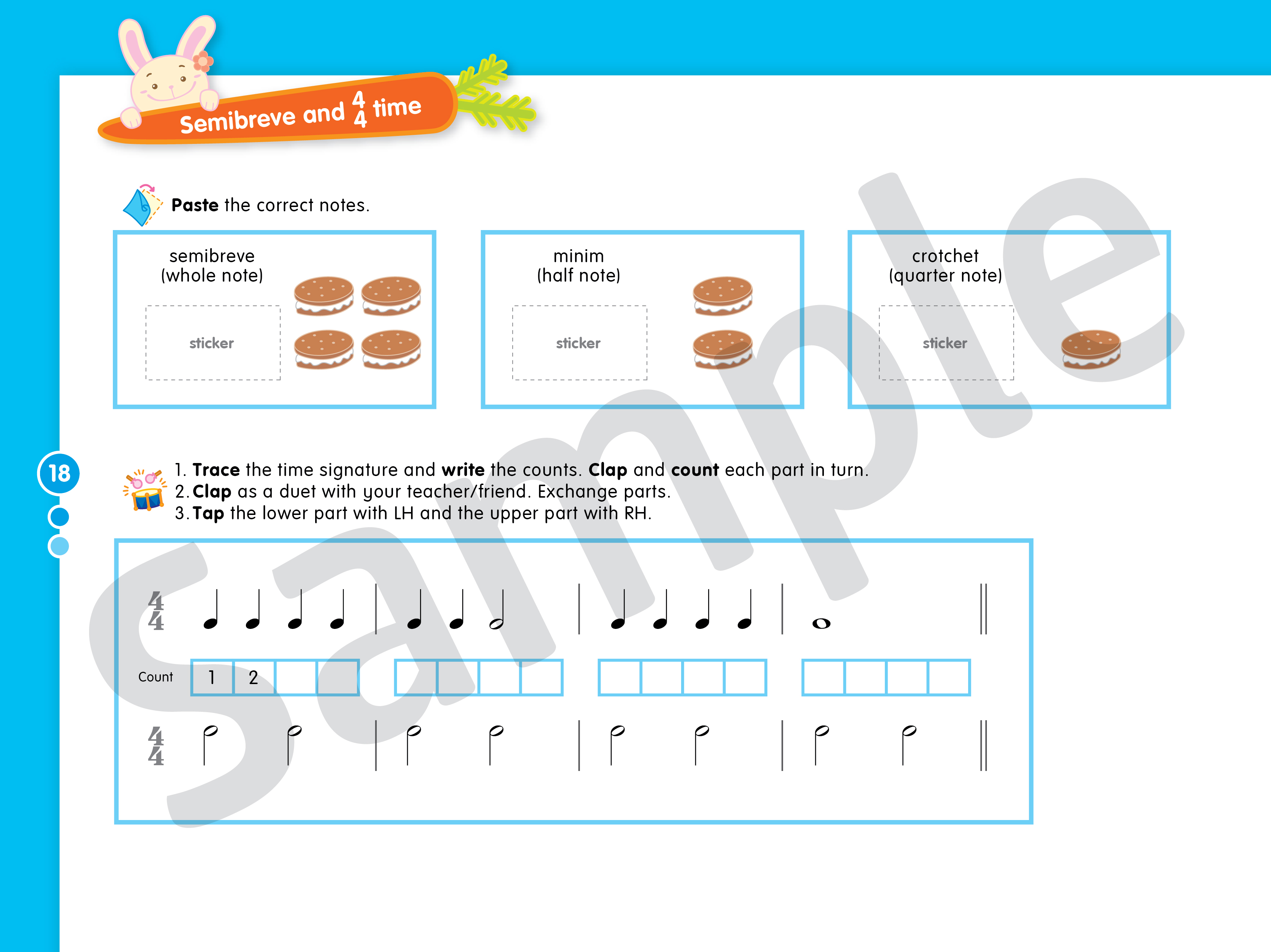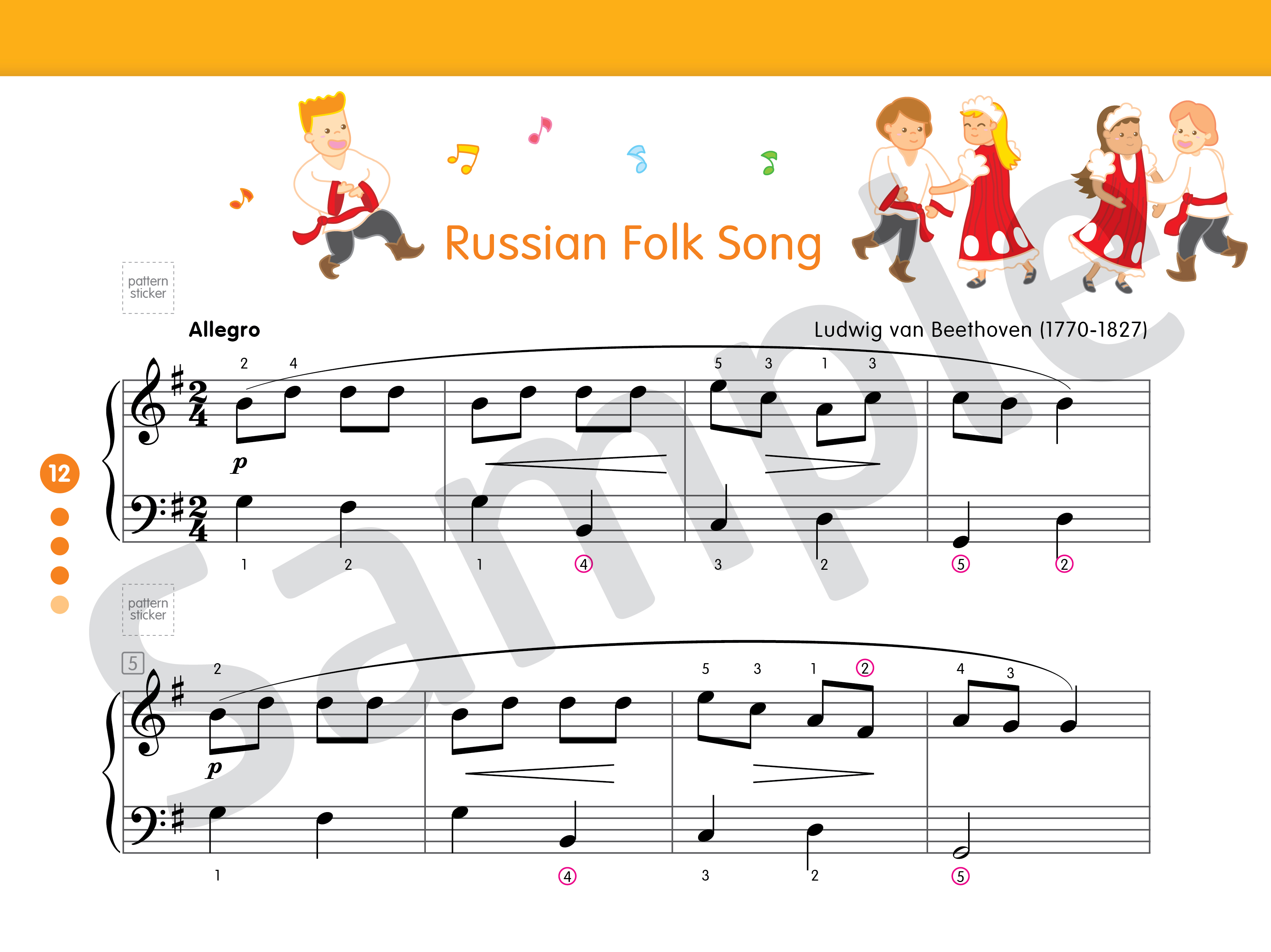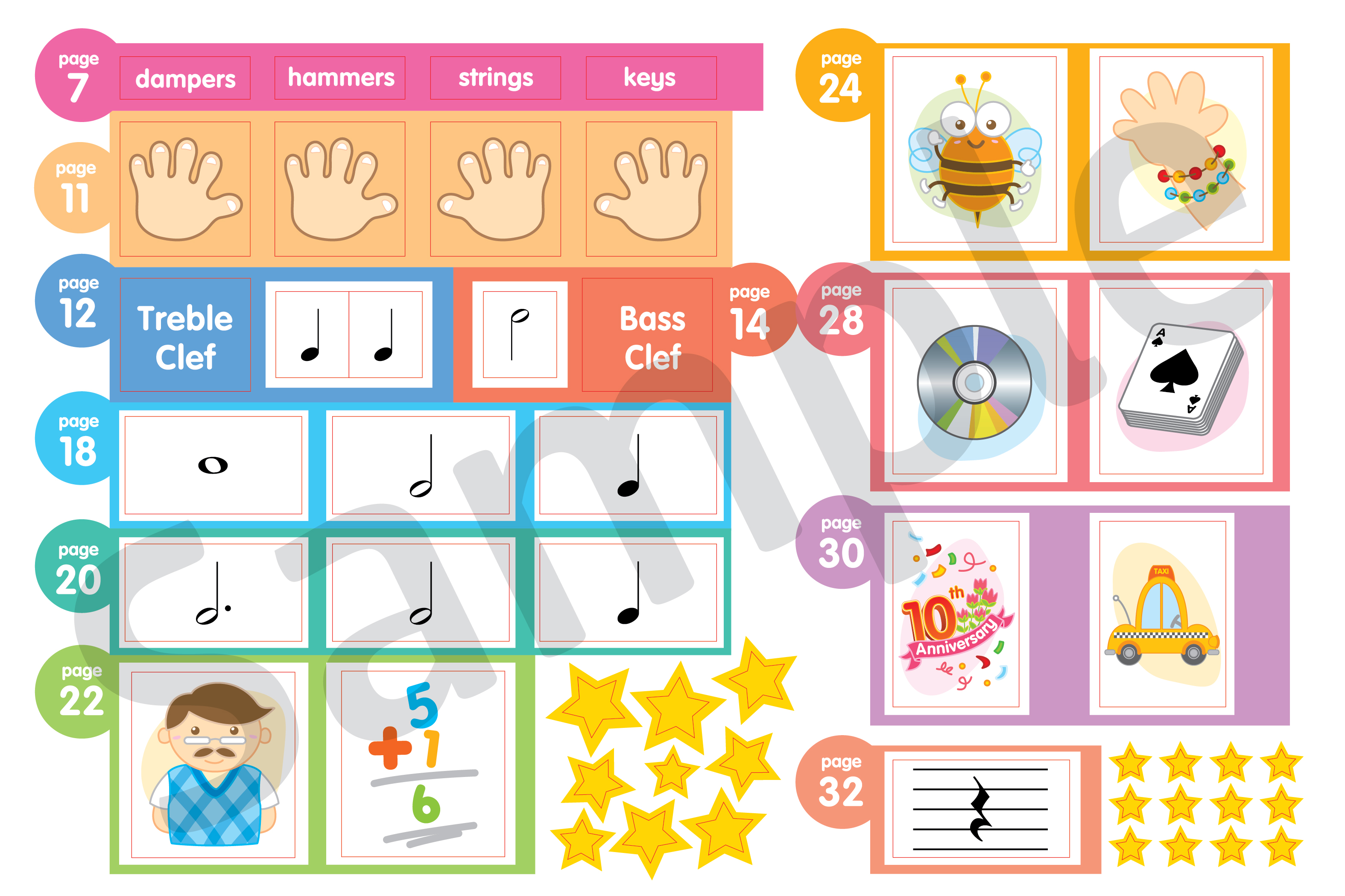 Motivation: An appealing layout of double-page spreads, with attractive stickers, color-coded notes, and big note notation to keep the student engaged.