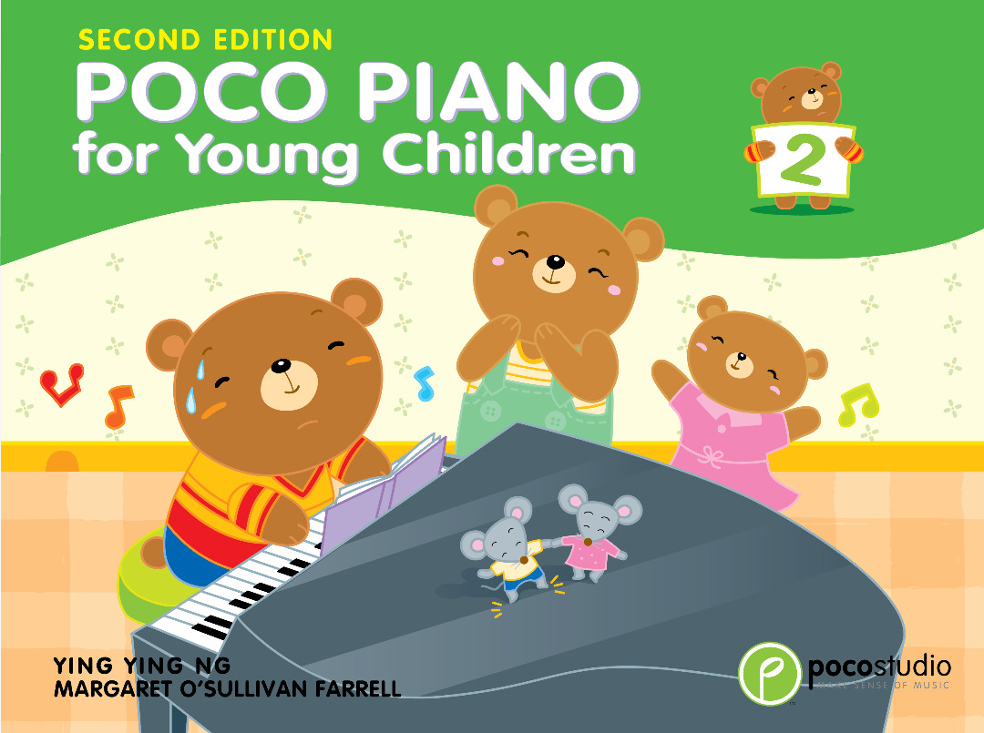 In Book 2 three new notes in each hand are mastered (up to “High C” and down to “Low C*) and the child experiences changes of hand position within a tune. Quavers are introduced in all the time signatures covered in Book 1. Sharps and flats are included, but no mention is made yet of keys, key signatures, scales, or triads. Dynamic markings are now in Italian, while tempo indications are still in English.